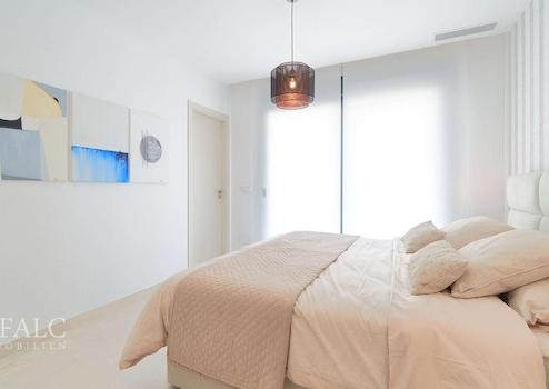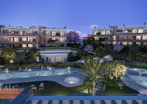 Die Anlage ist umgeben von Golfplätzen und in der Nähe aller Dienstleistungen. Die Wohnanlage wird insgesamt 63 Wohnungen mit Parkplatz und Abstellraum im Untergeschoss umfassen. Zwei Wohnungstypen stehen zur Auswahl: Wohnungen mit 2 Schlafzimmern und 2 Bädern bzw. Wohnungen mit 3 Schlafzimmern und 2 Bädern. Sie haben herrliche Gemeinschaftsbereiche mit einem Pool für Erwachsene, einem Kinderbecken, Whirlpools, einem Fitnessstudio, einem Yogabereich, einem Spielbereich für Boccia und einem Kinderspielplatz genießen. Ein perfekter Ort für ein neues Leben voller Emotionen.