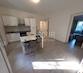 Die Wohnung befindet sich in einem Gebäude, das 2020 komplett renoviert wurde, mit einer Thermofassade und einem neuen Dach. Der Grundriss ist funktional – vom Eingang aus betreten Sie die geräumige Küche, während sich das Wohnzimmer gleich rechts befindet. Von der Küche aus betreten Sie einen kleineren Flur, der zum Schlafzimmer rechts und zum Badezimmer links führt.