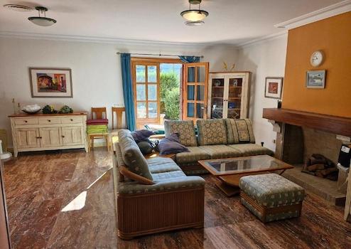 Hochwertig mit Natursteinen verkleidet, sehr gepflegt, Einbauschränke, 2 Kamine, doppelt verglaste Fenster, Holzfensterläden, einheitlicher Marmorboden, Teil Heizung, Klimaanlage warm und kalt, pflegeleichter Garten, Außen grill, Platz für einen Pool.