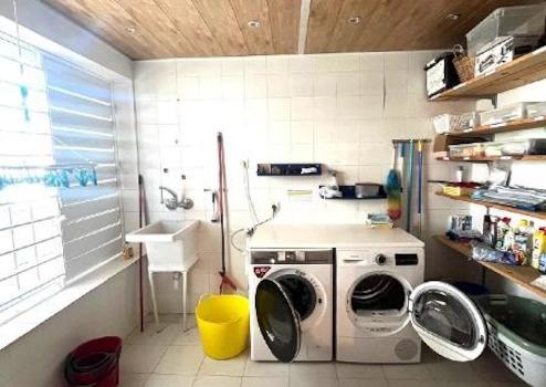 2 Wohnzimmer, 2 Küchen, 5 Schlafzimmer, 4 Bäder, 2 Abstellräume, Waschküche/ 2 Wohnungen in einem Haus, 4 Terrassen von 108m2 und eine Garage inkl. Keller von 250qm.