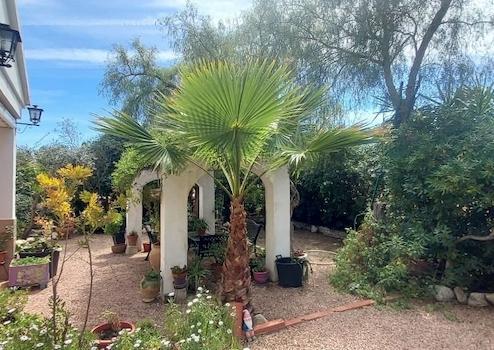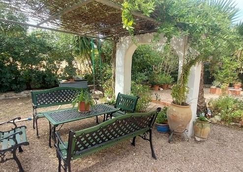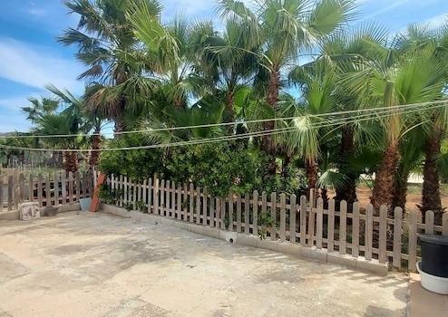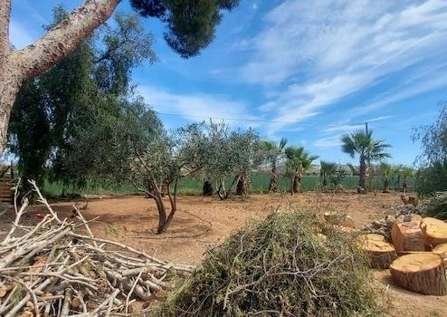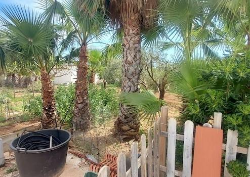 Das Grundstück ist mit Mandel-, Oliven- und Palmenbäumen bepflanzt.