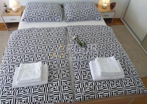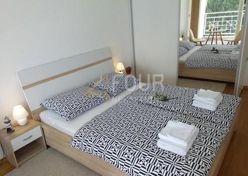 Die Wohnung besteht aus einem Eingangsflur, einer voll ausgestatteten Küche, Essbereich, großzügigem Wohnzimmer, Badezimmer, zwei komfortablen Schlafzimmern sowie einer großen Loggia, die sich ideal zum Verweilen im Freien eignet.