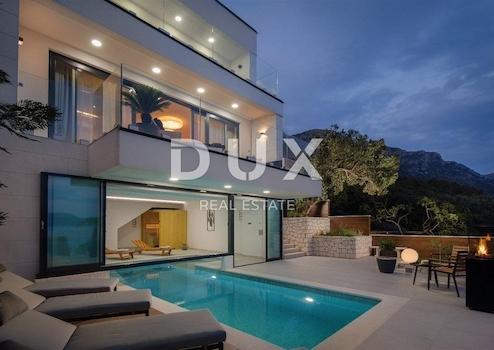 An der Adria-Autobahn, zwischen Makarska und Ploče, liegt ein kleiner, aber touristischer Ort namens Podaca. Die Villa liegt an der Riviera von Makarska, die sonst für ihre zahlreichen Küstenstädte bekannt ist, die auf der einen Seite mit wunderschönen Kiesstränden und auf der anderen Seite mit dem Berg Biokovo als stolzem Wächter geschmückt sind. Die Villa liegt nur 70 Meter vom Meer entfernt und bietet daher von allen Etagen aus einen Blick auf das endlose Blau. Die Villa ist mit den luxuriösesten Materialien ausgestattet. Die Zufahrt zur Villa ist mit Semmelrockplatten gepflastert und dient gleichzeitig als Parkplatz. Es gibt Platz für eine Modernisierung der Garage, wenn die zukünftigen Eigentümer dies wünschen. Eine Außentreppe führt in die mittlere Etage der Villa, also ins Erdgeschoss. Die Haustür sowie alle anderen Außentüren des Hauses stammen von Hörmann. Vor dem Eingang befindet sich ein Grillplatz mit Essbereich im Freien. Das Erdgeschoss besteht aus einem Wohnzimmer und einem Doppelzimmer mit eigenem offenen Badezimmer mit Badewanne. Im Wohnbereich befinden sich eine Gästetoilette, ein mit Natuzzi-Möbeln ausgestattetes Wohnzimmer, das von einem Kamin und einem schönen Konsolentisch mit Steinsockel beheizt wird, der vom Eigentümer selbst geschaffen wurde. Das Esszimmer ist mit einem handgefertigten Holztisch mit modernen Stühlen dekoriert und die offene Küche mit Kochinsel ist komplett mit AEG-Geräten ausgestattet. Zusätzlich zur Dunstabzugshaube verfügt die Küche über eine zusätzliche Belüftung, die auch durch die gesamte Villa gezogen wird. Vom Wohnzimmer aus gelangt man durch Glaswände, die Außengeräusche vollständig eliminieren, auf einen schönen, geräumigen Balkon, der einen Blick auf den darunter liegenden Pool und in der Ferne auf das Meer bietet. Der Balkon ist mit Outdoor-Loungemöbeln ausgestattet. Vom Erdgeschoss, dem Zentrum der Villa, führt eine Innentreppe zum Wellnessbereich, der sich auf eine Terrasse mit Sonnendeck öffnet. Der Pool befindet sich sowohl im Innen- als auch im Außenbereich. Die Trennkonstruktion ist mobil, so dass er im Sommer vollständig geöffnet ist und im Winter das Schwimmen im Innenbereich ermöglicht. Darüber hinaus ist der Pool beheizt und verfügt über ein Massagesystem und eine Elektrolyseanlage. Für eine besondere Atmosphäre sorgen in diesem Bereich außerdem eine finnische Sauna, eine Innendusche und ein freistehender Kamin. Der Pool bietet einen Blick auf das Meer. Der Boden des Wohnzimmers ist mit Travertinstein ausgelegt, ebenso wie die breite, schön beleuchtete Treppe, die in den ersten Stock führt. Im ersten Stock befinden sich drei Schlafzimmer mit jeweils eigenem Bad, zwei davon teilen sich einen großzügigen Balkon mit schöner Aussicht. Die Schlafzimmer sind mit maßgefertigten Betten, Einbauschränken und Stoppervorhängen ausgestattet. Die gesamte Villa verfügt über eine Fußbodenheizung durch Wärmepumpen und jede Etage der Villa verfügt über einen eigenen Schaltschrank sowie ein Heiz- und Kühlsystem. Die Villa ist mit einer Solaranlage ausgestattet. Die Fassade der Villa ist hervorragend isoliert, belüftet und mit erstklassigem Stein verziert. Aus dem Gartenbau pflanzten die Besitzer Orangen, Limetten, Zitronen, Lavendel und Oliven an. Auf der linken Seite der Villa gibt es keine Bauzone, sodass Sie sich auf langfristige Privatsphäre verlassen können.