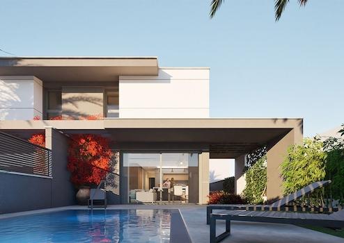 Doppelhaus-Villen mit 3 Schlafzimmern, 3 Bädern, Dachterrasse, Vorinstallation Klimaanlage und Privatpool nur 100 m vom Strand