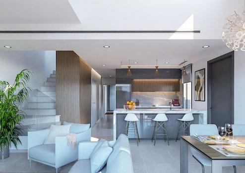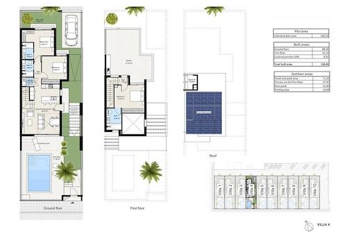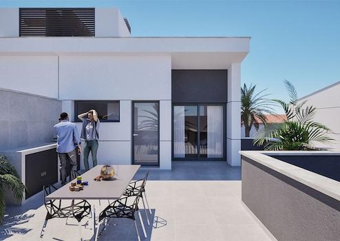 Nur 100 m vom Strand des Mar Menors entstehen hier 10 Doppelhausvillen mit 3 Schlafzimmern und 3 Bädern, mit großzügigen Dachterrassen und Privatpools.