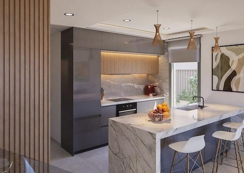 Die Ausstattung der Häuser beinhaltet unter anderem Privatpool, Sicherheitstüren, Aluminiumfenster mit Doppelverglasung, moderne Einbauküchen mit Elektrogeräten, LED-Beleuchtung innen und außen, Einbauschränke in den Schlafzimmern, Vorinstallation Klimaanlage, Duschtrennwände in Bädern, Dachterrassen mit Sommerküchen, Photovoltaik-Paneele für die Stromerzeugung und einen Kfz-Stellplatz auf jedem Grundstück.