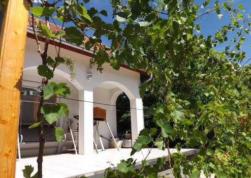 A D-i és Ny-i tájolású házhoz nyitott és zárt teraszok, erkélyek, nyári konyha búbos kemencével, közel 50 m2-es garázs, 24m2-es pince, és egyéb tároló terek is tartoznak. A területen egy földbevájt boltíves, felújításra váró kőfalazatú pince is található. További részletek a mellékelt alaprajzról leolvashatóak.