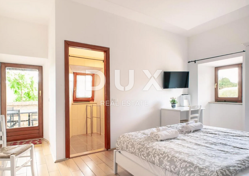 Wenn alle Wege in Europa nach Rom führen, dann führen alle Wege in Istrien nach Žminj – dem Herzen Istriens auf einer Höhe von 379 Metern. Žminj ist seit der Antike ein wichtiger Verkehrsknotenpunkt. Es verband die gesamte istrische Halbinsel. Aufgrund seiner außergewöhnlichen Naturschönheit, endlosen Wiesen, Weinbergen, fruchtbaren Feldern, alten Wäldern und neu entdeckten Höhlen ist es der richtige Ort für den Kontakt mit der Natur. Grüner, gesunder und nachhaltiger Tourismus ist charakteristisch für diese Gemeinde, die sowohl flächenmäßig als auch kulturell und gastronomisch beeindruckend ist. Das malerische Gebiet von Žminj umfasst 33 Siedlungen und 112 Dörfer. Zum Verkauf steht eine wunderschöne istrische Villa mit einer Fläche von 225 m², die sich auf einem Grundstück von 688 m² befindet und istrische Tradition perfekt mit modernem Design verbindet. Die Villa besticht durch authentische Details wie originale Steinwände, weiße Deckenbalken und Holzböden und schafft eine gemütliche und elegante Atmosphäre. Der durch die Verbindung zweier Steinhäuser entstandene Innenraum beeindruckt durch seine Geräumigkeit und luxuriöse Dekoration. Das Erdgeschoss besteht aus einem geräumigen Wohnzimmer, Esszimmer und Küche und die hohen Decken von 6 Metern vermitteln den Eindruck außergewöhnlicher Geräumigkeit. Der Kamin trägt zur Wärme des Raumes bei, während sich im Erdgeschoss ein ca. 30 m² großes Schlafzimmer befindet. Im Obergeschoss befinden sich drei luxuriöse Schlafzimmer mit jeweils eigenem Bad, die für maximalen Komfort und Privatsphäre sorgen. Zu den Außenanlagen gehören ein 49 m² großer Swimmingpool, eine Sommerküche und ein angelegter 414 m² großer Garten, der sich ideal zum Genießen im Freien eignet. Die Villa verfügt außerdem über einen separaten Technikbereich mit einem Speicher für Zentralheizung und Warmwasserspeicher, was die Praktikabilität noch weiter erhöht. Die Villa verfügt außerdem über zwei Parkplätze. Dank der etablierten Touristenvermietung stellt diese Immobilie eine ausgezeichnete Investition oder ein luxuriöses Einfamilienhaus in einer ruhigen und entspannenden Umgebung dar. Verpassen Sie nicht die Gelegenheit, diese einzigartige Villa zu besitzen!