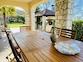 Die Terrasse vor dem Haus ist mit einem großen überdachten Grill mit Grillrosten, einem Backblech und der Option einer Holz- oder Gasflamme ausgestattet, ideal zum Zubereiten von Mahlzeiten im Freien.