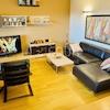 Das Wohnzimmer ist mit einem eleganten italienischen Ledersofa und einem 65-Zoll-Smart-TV ausgestattet, und es gibt auch eine Sauna zur vollkommenen Entspannung.