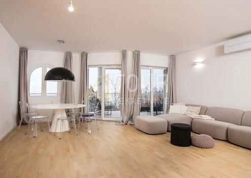 Die Wohnung hat eine luxuriöse Fläche von 147 m², eine Aufteilung mit 3 Schlafzimmern + Wohnzimmer und verfügt über ein großes Wohnzimmer, eine separate Küche mit Speisekammer, zwei luxuriös renovierte Badezimmer, eines davon en-suite, und zwei Balkone, einer davon 20 m² groß mit Panoramablick. Die Flure und Zimmer sind mit Einbauschränken ausgestattet, und die Fußbodenheizung erstreckt sich über alle Keramikoberflächen. Jedes Zimmer ist mit einer Mitsubishi-Klimaanlage ausgestattet.