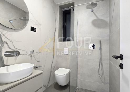 Opatija – moderne Wohnung in einem hochwertigen Neubau, Fläche 57,89 m2 mit einem Garten von 112,75 m2 und einem Garagenstellplatz von 18 m2.