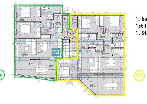 Das Apartment S3 befindet sich im 1. Stock und besteht aus einem Eingang, einem Flur, einem Flur, einem Badezimmer/Waschküche, einem Schlafzimmer 1, einem Schlafzimmer 2, einem Schlafzimmer 3, einem Abstellraum, einem Badezimmer, einer Küche mit Esszimmer und einem Wohnzimmer, das zu einem geräumigen, überdachten Raum führt Terrasse von 24,79 m2 mit herrlichem Blick auf das Meer und den Archipel. Zur Wohnung gehört ein Parkplatz. Die Wohnung S3 hat eine Gesamtnutzfläche von 113 m2. Der Preis beträgt: 355.000 € (inkl. MwSt. – der Käufer ist von der Zahlung von 3 % Immobilienumsatzsteuer befreit).