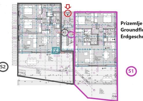 Die Wohnung S1 befindet sich im Erdgeschoss und besteht aus einem Eingang, Flur, Flur, Badezimmer/Waschküche, Schlafzimmer 1, Schlafzimmer 2, Badezimmer, Küche mit Esszimmer und Wohnzimmer, das zu einer geräumigen überdachten und nicht überdachten Terrasse von 55,86 führt m2 und der dazugehörige Gartenteil mit einer Fläche von 152,26 m2. Zur Wohnung gehört ein Parkplatz. Die Wohnung S1 hat eine Gesamtnutzfläche von 105,50 m2 + einen Garten von 152,26 m2. Der Preis beträgt: 330.000 € (inkl. MwSt. – der Käufer ist von der Zahlung von 3 % Immobilienumsatzsteuer befreit).