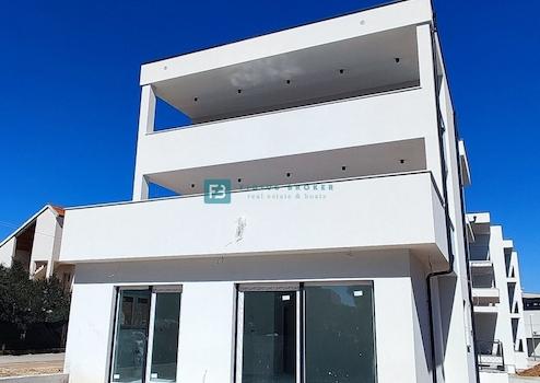 Es befindet sich in einer großartigen Lage, in der Nähe einer Schule, eines Kindergartens und von Geschäften sowie des 1100 m entfernten Zentrums und des 1300 m entfernten Strandes. Neues kleineres Wohngebäude mit insgesamt 4 Wohnungen. Das modern wirkende Wohngebäude besteht aus drei Etagen: Erdgeschoss + 1. Etage + 2. Etage. Das Erdgeschoss wird von zwei Wohnungen genutzt, im 1. und 2. Obergeschoss befindet sich jeweils eine Wohnung. Das Gebäude wurde mit hochwertigen Materialien nach den neuesten Baustandards gebaut und ist nach den neuesten Baustandards ausgestattet: Styroporfassade, Schüco PVC-Außenschreinerei in Anthrazitfarbe, Schiebewände im Wohnzimmer, in Fenster mit Rollläden integrierte Moskitonetze, Keramik, erstklassiges Laminat in den Schlafzimmern, ebenerdige Dusche mit Glasseite im Badezimmer, elektrischer Badezimmerheizkörper, Klimaanlage in allen Zimmern. Das Gebäude verfügt über einen Anschluss an die städtische Kanalisation und eine asphaltierte Zufahrtsstraße. Geplanter Einzug 04/2025. Jahr.