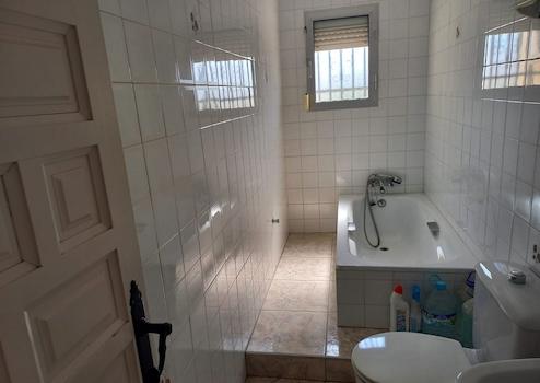 das Erdgeschoss mit 4 Schlafzimmern, 1 Badezimmer mit Wanne, 1 Esszimmer, 1 Einbauküche, 1 Balkon, 1 überdachten Terrasse vor dem Eingang und 2 von außen zugängliche Abstellräume sowie