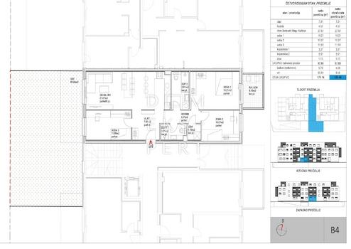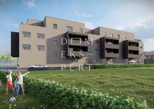 This three-bedroom apartment is located on the ground floor of a new residential building near the center of Zaprešić. The apartment features 87.60 m² of heated living space and a net usable area of 100.46 m², including a private garden of 85.84 m².