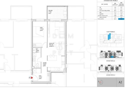 This one-bedroom apartment is located on the ground floor of a new residential building near the center of Zaprešić. The apartment offers 51.60 m² of heated living space and a net usable area of 56.96 m², including a 7.15 m² balcony.