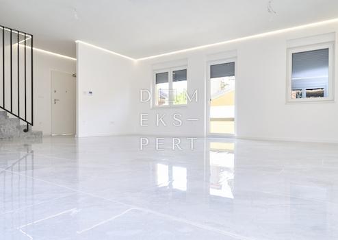 Zum Verkauf steht eine moderne, zweigeschossige 4‑Zimmer‑Wohnung mit eigenem Garten und Dachterrasse in Dugo Selo.