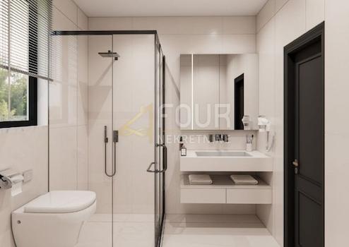 Die Wohnung hat eine Fläche von 96,51 m2 und besteht aus zwei geräumigen Schlafzimmern, einem Wohnzimmer, einer Küche mit Esszimmer, zwei Badezimmern, einem Flur und einer überdachten Terrasse (10,86 m2).