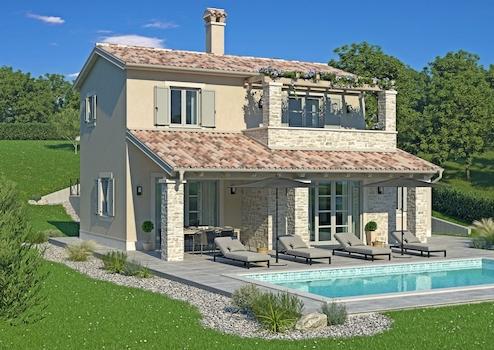 An der südöstlichen Küste Istriens, dort, wo grüne Hügel auf das Meer treffen, wo Natur und Erbe zusammenkommen, liegen zwei Städte gleicher Größe mit unterschiedlichen, sich aber gegenseitig ergänzenden Charakteren – Labin und Rabac. Die malerische Stadt Labin erhebt sich auf einem 320 m hohen Hügel, nur vier Kilometer von den weißen Kiesstränden in Rabac entfernt. Labin, das für kurze Zeit zur unabhängigen Republik erklärt wurde, ist eng mit der reichen Geschichte und dem Bergbau verbunden, die diese Region prägten, und ist heute eine faszinierende Stadt voller Widersprüche. alt und neu, Geschichte und Gegenwart, Tourismus und Kunst. In ruhiger Lage in der Umgebung der Stadt Labin steht ein Haus mit Swimmingpool und Panoramablick auf das üppige Grün zum Verkauf. Dieses sowohl traditionsreiche als auch moderne Haus besticht durch seine raffinierte Eleganz. Es wurde als Einfamilienhaus konzipiert, das höchste funktionale und ästhetische Kriterien erfüllt. Die Wohnfläche umfasst eine Nettofläche von 129,10 m² und erstreckt sich über zwei Etagen; Erdgeschoss und erster Stock. Das Erdgeschoss wird von einem großzügigen offenen Raum dominiert, der Wohnzimmer, Esszimmer und Küche mit Zugang zu einer großzügigen überdachten Terrasse vereint. Auf der gleichen Etage befinden sich ein Schlafzimmer mit eigenem Bad, ein Flur, eine Toilette und ein Abstellraum. Eine Innentreppe führt in den ersten Stock, wo sich zwei Schlafzimmer mit eigenem Bad und eine mit einer Pergola überdachte Terrasse befinden. Mit der gleichen Sorgfalt, mit der das Haus gebaut wurde, wurde jeder Winkel des Gartens als Nahrung für Augen, Seele und Körper gestaltet. Es ist gärtnerisch angelegt und eingezäunt und verfügt über einen 32 m² großen Swimmingpool mit Sonnendeck und Parkplätzen. Diese perfekt in die sie umgebende Landschaft integrierte Immobilie ist eine perfekte Gelegenheit für das Familienleben oder als Investition zur Vermietung für touristische Zwecke. Das Haus befindet sich im Bau und wird schlüsselfertig verkauft, einschließlich der ersten Phase der Fußbodenheizung. Der Verkäufer ist eine juristische Person und der angegebene Preis enthält keine Mehrwertsteuer.
