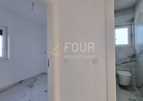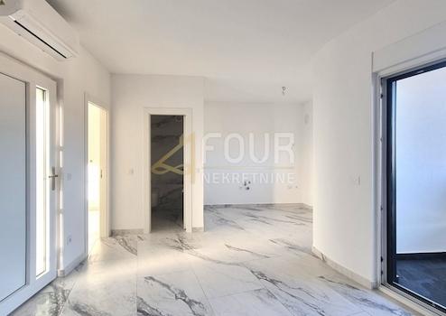 Zum Verkauf steht eine moderne Wohnung in einem Neubau, gelegen im ruhigen Dorf Čižići auf der Insel Krk. Die Wohnung befindet sich im ersten Stock einer Reihe von drei Wohngebäuden mit jeweils drei Wohnungen und nimmt das gesamte Stockwerk ein.
