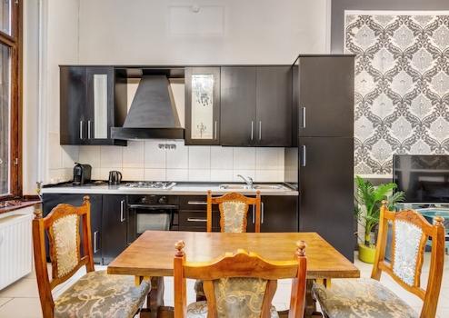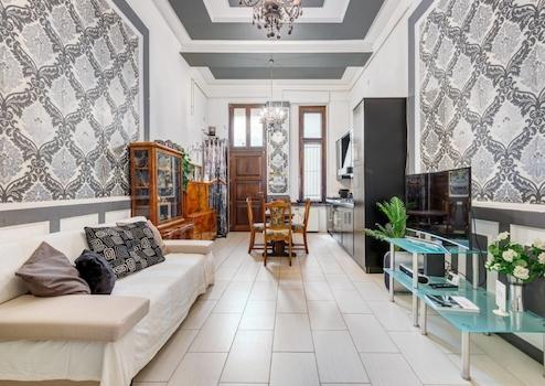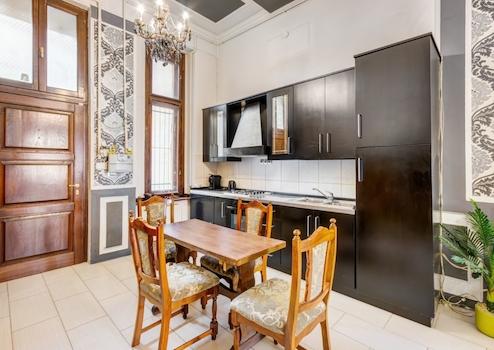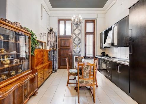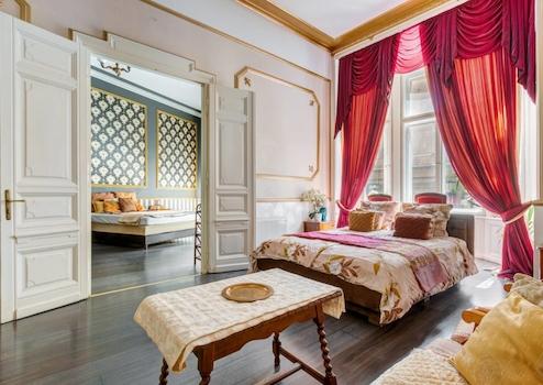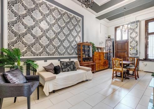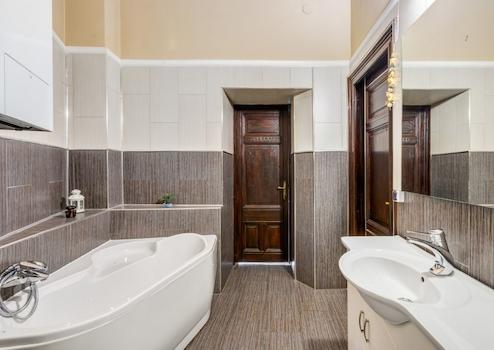 A lakásban modern fürdőszoba várja a leendő tulajdonost, ahol sarokkád és nagyméretű zuhanyfülke biztosítják a kényelmet. Az ingatlan belső tereit elegáns, nagypolgári stílusú bútorok és kiegészítők, fastukkók, olasz dizájn tapéta és tükrök teszik egyedivé. A szobák világosak, napfényesek, tágasak, és a történelem eleganciáját és a modern kényelmet tökéletesen ötvözik.