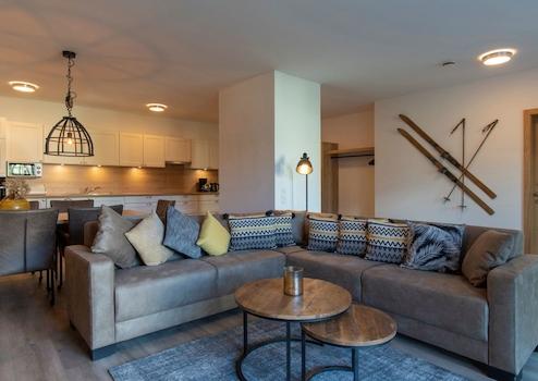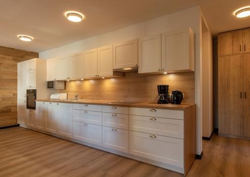 Das schöne Wohnzimmer ist mehr als 55 m2 groß und geschmackvoll eingerichtet. Die Küche ist riesig und mit mehr als genug Schränken und Schubladen ausgestattet. Dank der Fußbodenheizung sind keine Heizkörper erforderlich. Durch die bodentiefen Schiebetüren gelangen Sie auf Ihre über 74 m² große Terrasse, mit wunderschönem Blick auf Schruns und das Skigebiet Silvretta Montafon.