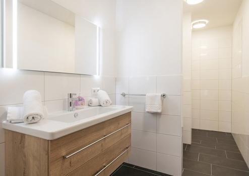 Ferienwohnung A1 verfügt über 2 geräumige Badezimmer sowie ein 3. Gäste-WC. Ein Badezimmer liegt direkt neben Schlafzimmer Nummer 3.