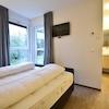 Das Schlafzimmer mit Doppelbett bietet einen ruhigen und komfortablen Raum zum Entspannen. Die stilvolle Einrichtung ist mit viel Liebe zum Detail gestaltet und sorgt für eine entspannte Atmosphäre. Das Zimmer ist geräumig und hell, mit viel Platz im Kleiderschrank und einer angenehmen Temperatur dank der Klimaanlage. Direkt an das Schlafzimmer schließt sich das eigene Bad an, das Privatsphäre und Komfort vereint. Das Bad ist mit modernen Annehmlichkeiten ausgestattet, darunter ein Waschbecken, eine Dusche und eine Toilette, die für den ultimativen Komfort während Ihres Aufenthalts sorgen.