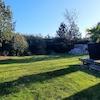 Das geräumige und helle Wohnzimmer bietet eine warme, einladende Atmosphäre dank der großen Fenster mit Blick auf den grünen Garten. Flügeltüren sorgen für viel natürliches Licht und einen direkten Zugang zur Terrasse, die sich perfekt für das Leben drinnen und draußen eignet.