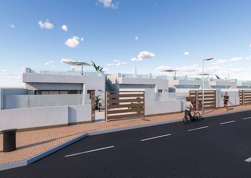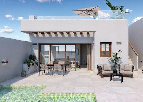 Dies ist ein exklusiver Komplex moderner freistehender Villen mit jeweils eigenem Pool, Freiflächen und einem Solarium in Torre-Pacheco, Murcia.