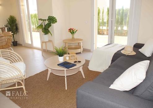 Der Bodenbelag in allen Räumen besteht aus hochwertigen Fliesen, die sowohl pflegeleicht als auch modern sind. Zusätzlichen Stauraum bietet ein praktischer Abstellraum im Haus. Des Weiteren gibt es ein Gäste-WC für Ihre Besucher.