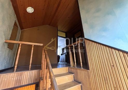 Zum Verkauf steht ein Einfamilienhaus, das sich über drei Etagen erstreckt: Keller, Erdgeschoss und Dachgeschoss.