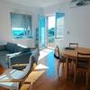 Die Wohnung besteht aus einer großen Küche und einem Esszimmer, das mit dem Wohnzimmer verbunden ist und auf einen Balkon mit Meerblick führt, der sich perfekt zum Entspannen und Genießen eignet. Es gibt ein weiteres kleineres und ein größeres Schlafzimmer.