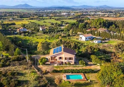 Obwohl die Villa auf dem Lande liegt, ist sie nicht isoliert: Sie ist von anderen prestigeträchtigen Grundstücken umgeben, was eine sichere und angenehme Umgebung schafft, ohne die Privatsphäre zu beeinträchtigen.