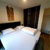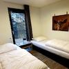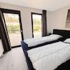 Das zweite Schlafzimmer hat 2 einzelne Boxspringbetten. Zook hier ist ein großes Fenster bis zum Boden, die eine räumliche Wirkung und natürlich viel Licht gibt.