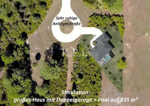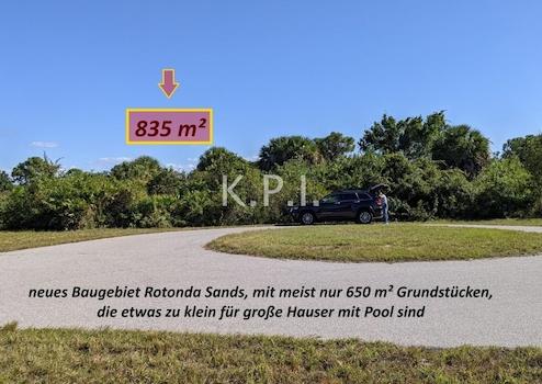 Aber Achtung: In diesem Baugebiet haben die Grundstücke größtenteils nur wenig mehr als 650 qm Fläche. Auf solch (für amerikanische Verhältnisse) kleinen Flächen können keine großzügigen Villen mit Pool gebaut werden, was für informierte Amerikaner zur absoluten Abwertung dieser zu kleinen Grundstücke führt, die später weder vernünftig zu bebauen, noch später wieder zu verkaufen sind!