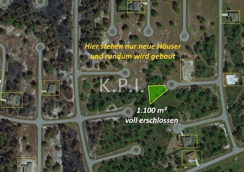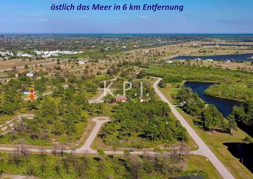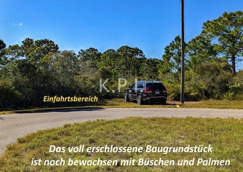 Das Baugrundstück ist mit Palmen und Bäumen bewachsen und wird von einer Home Owner Gesellschaft gegen eine kleine jährliche Gebühr gemäht und gepflegt. Keine weitere gesetzliche Pflicht zur Pflege des Grundstücks.