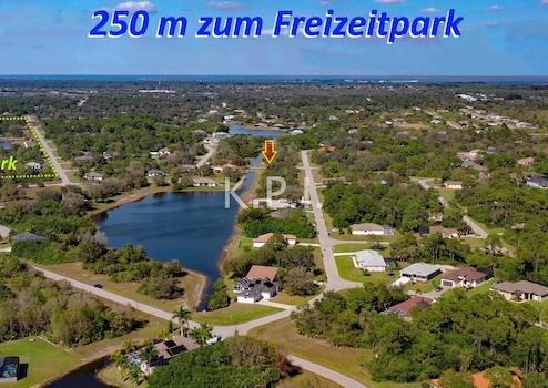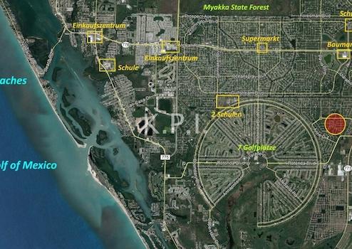 Einkaufszentrum, Schulen, Freizeiteinrichtungen und Naherholung ganz in der Nähe. Das Baugrundstück ist mit Palmen und Bäumen bewachsen und wird von einer Home Owner Gesellschaft gegen eine kleine jährliche Gebühr gemäht und gepflegt. Keine weitere gesetzliche Pflicht zur Pflege des Grundstücks. Sofort bebaubar - ohne jeglichen Bauzwang. Auch als Kapitalanlage geeignet.