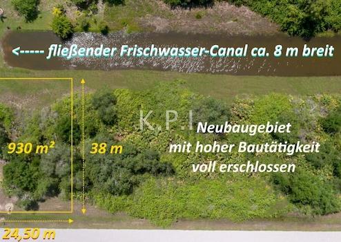 Baugrundstück, 930 m², voll erschlossen (nach deutschem Standard), an einem fließenden Frischwasserkanal, exklusive Wohngegend, fast nur neue gepflegte Nachbarhäuser, wohlhabende Nachbarschaft, ruhig gelegen.