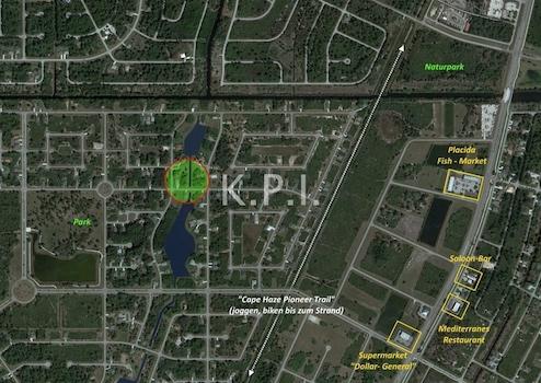 Stadtteil Rotonda Lakes: Ein relativ neues Baugebiet nordöstlich des Rotonda Circle, beliebt bei Menschen, die ruhig und auf voll erschlossenen Grundstücken leben wollen. Der Frischwasserkanal grenzt südlich an Ihr Grundstück.