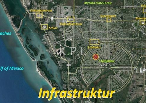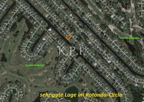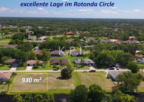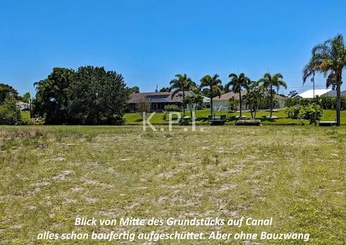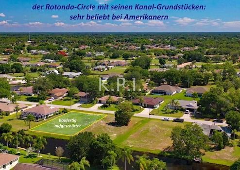 Am Wasser: Sehr begehrtes Baugrundstück (930 m²) - Baulücke im exklusiven Rotonda-Circle, voll erschlossen (nach deutschem Standard), direkt an einem breiten, klaren, fließenden ca. 20 m breiten Frischwasserkanal, von dem aus Sie über 40 km durch alle im Circle verfügbaren Wasserstraßen mit einem kleinen Motorboot fahren können. Das Baugrundstück ist schon baufertig aufgeschüttet und wird von einer Home Owner Gesellschaft gegen eine kleine jährliche Gebühr gemäht und gepflegt. Keine weitere gesetzliche Pflicht zur Pflege des Grundstücks.