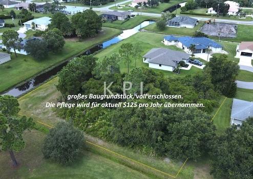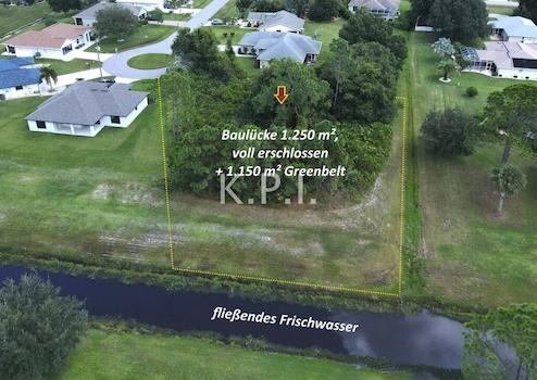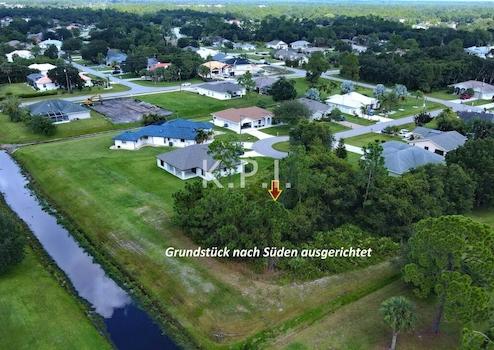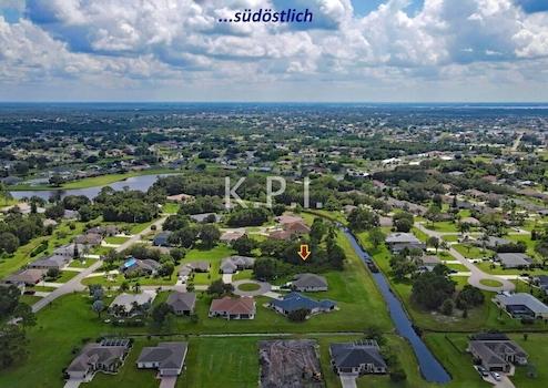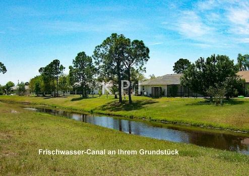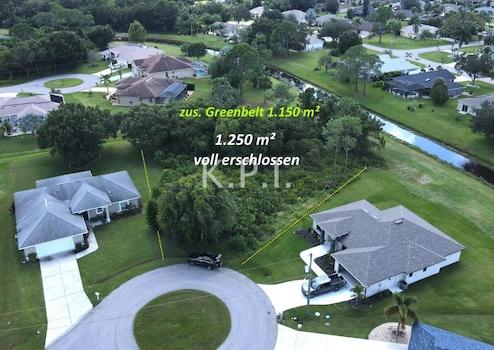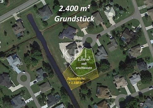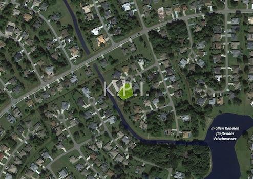 Baugrundstück, 1.250 m², voll erschlossen (nach deutschem Standard), an einem fließenden Frischwasserkanal (perfekt zum Angeln) exklusive Wohngegend, fast nur neue gepflegte Nachbarhäuser, wohlhabende Nachbarschaft, an ruhiger "Cul-de-sac"-Straße (Wendehammer)