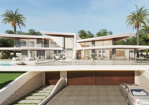 Eine wirklich spektakuläre Villa mit einem atemberaubenden zeitgenössischen Design, das subtile Außenkurven in die Fassade integriert. Dieses Architekturprojekt wurde für ein Grundstück von 2000 m² am Monte Olimpo in Jávea entworfen.
