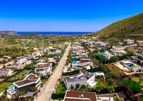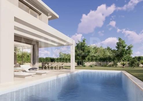 Die geräumige Terrasse verfügt über Pergolen, einen Essbereich im Freien und einen großzügigen Swimmingpool, der sich perfekt zum Entspannen und Genießen der Umgebung eignet. Dieses prächtige Anwesen, das sich derzeit im Bau befindet, wird im Oktober dieses Jahres vollständig fertiggestellt und bietet allen modernen Komfort, den sich seine Eigentümer wünschen können.