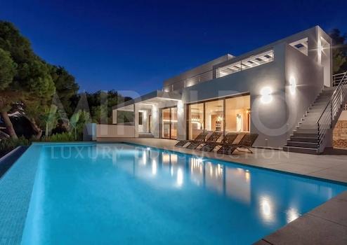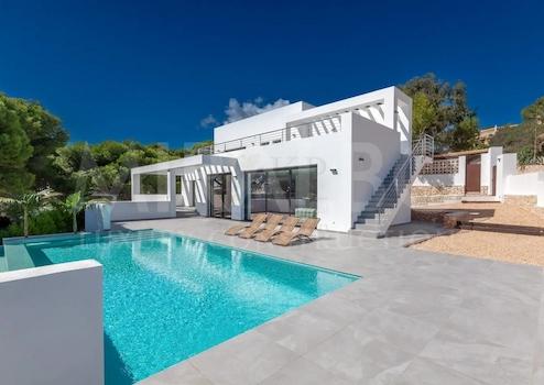Diese kürzlich fertiggestellte Villa zeichnet sich durch ihr modernes und elegantes Design mit großen Fenstern aus, die für Licht und Harmonie zwischen Innen- und Außenbereich sorgen. Genießen Sie die große Terrasse mit dem Infinity-Pool, die mit dem geräumigen Wohn-Esszimmer verschmilzt und einen idealen Ort zum Entspannen, Sonnenbaden, Essen mit Familie und Freunden oder einfach zum Betrachten der wunderschönen Meereslandschaft bietet, die Ihnen Javea das ganze Jahr über bietet.