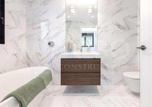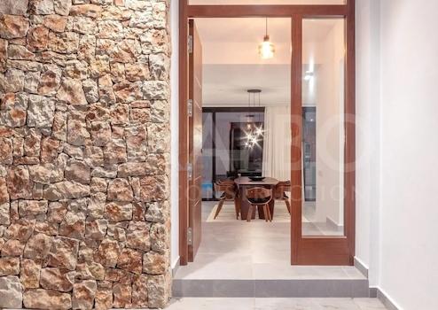 Die Villa verfügt über eine sehr funktionale und komfortable Aufteilung. Im Erdgeschoss finden wir das Wohn·Esszimmer mit der großen offenen Küche, ausgestattet mit hochwertigen Geräten und einer Kochinsel, die Waschküche, 2 Doppelschlafzimmer mit en-suite Badezimmern sowie ein weiteres komplettes Badezimmer. Ein Schlafzimmer hat Zugang zur Terrasse, ebenfalls mit Meerblick.