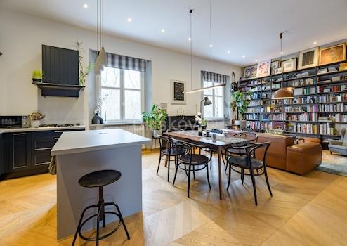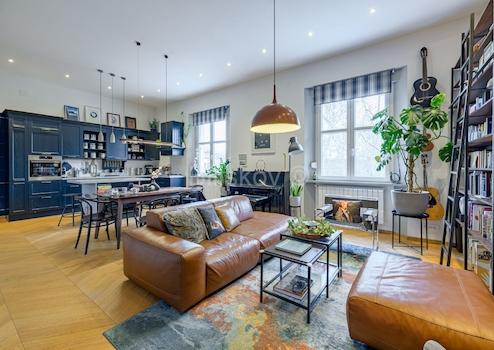 Bei der Renovierung wurden hochwertige Materialien verwendet, und die Wohnung ist erstklassig und modern ausgestattet. Jedes Zimmer verfügt über eine Klimaanlage, das Badezimmer hat Fussbodenheizung, und mit einer Deckenhöhe von 3,5 Metern wird ein Gefühl von Luxus geschaffen. Der Blick auf den Park, der das Wohnzimmer dominiert, verleiht dem Raum einen besonderen Charme.