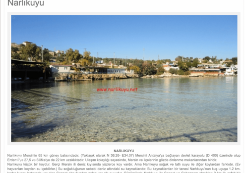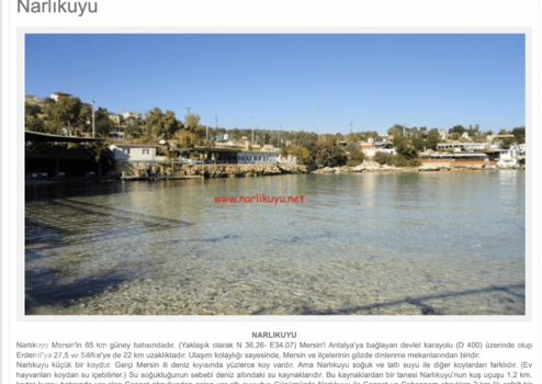 Narlikuyu auch „Brunnen mit Granatapfel“ genannt, liegt ca. 7 km westlich von Kizkalesi und ist ein kleiner Fischerort an einer Bucht gelegen.